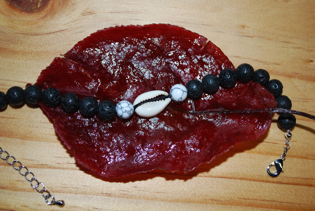 Bracelet pierre de lave avec coquillage