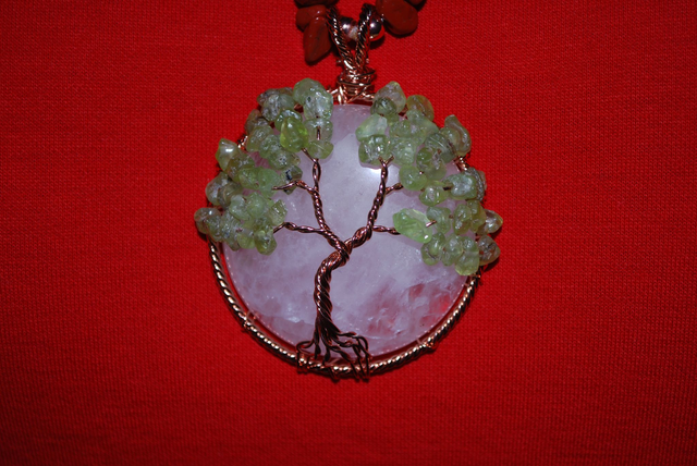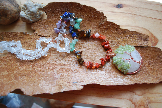 Collier cristal de roche et 7 chakras avec arbre de vie